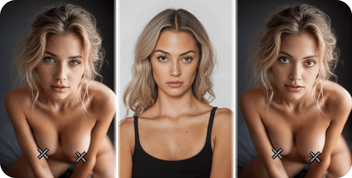 The face swap module from Deep-Nudes is not just a face swap in an image. It is a complex AI face generator that accurately recreates facial expressions, light, shadows and textures. It is especially popular in the nsfw face swap category - for entertainment, fantasy and custom content.